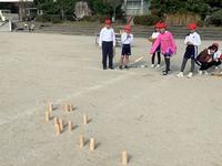 本日、5年生は体育でモルックをチーム対抗で行いました。