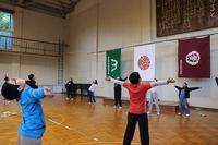 気の早い子どもたちは起床時刻前から準備をはじめ、朝の集いでは元気よくラジオ体操を行いました。