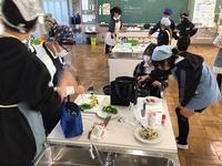 6年生家庭科では、「主食に添える主菜(おかず)をつくろう」の授業で調理実習を行いました。