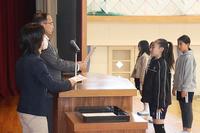 今日の月曜朝会は、理科作品展と技術・家庭科作品展に出展した代表者の表彰と、校長講話がありました。