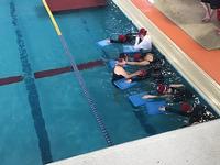 近づいてきました。補助具なしで泳ぐグループもあり、泳ぎの感覚を思い出してきたようです。