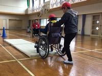 実際に車椅子に乗って体験をしました。補助の仕方も教えていただきました。四苦八苦しながらも徐々に車椅子を