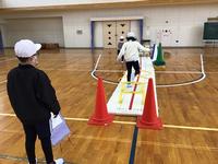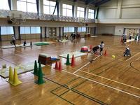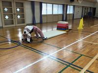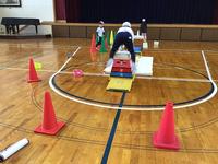 自分たちで作ったコースを回りながら、前転、後転、開脚跳び等の練習した成果を発揮しています。