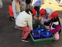1年生の生活科授業でチューリップの球根を鉢に植えました。