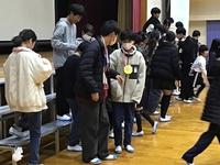 1・2年生が主催する「お別れ式」と、3年生から5年生が参加する「卒業証書授与式」の予行演習でした。