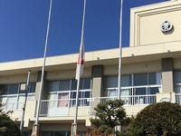 半旗を掲げ、地震発生の午後2時46分にあわせて全校児童・職員で、震災にあわれた方にご冥福をお祈りしました。