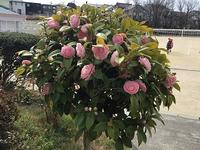 校庭の『乙女椿(おとめつばき)』が桃色の花を咲かせています。春到来を感じさせます。