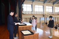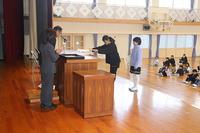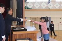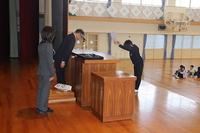 各学年の代表児童に修了証を校長から渡し、『修了』の意味を全校児童に伝えました。