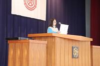 委員会活動・部活動・学校行事に取り組むことから学んだことを明朗な口調で述べてくれました。