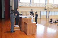 修了式では、修了証授与、一年間の成長を振り返る代表児童の作文発表、校長式辞、表彰披露という流れで行いました。