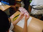 クラブ活動がありました。それぞれの活動場所で、12のクラブに分かれて楽しんでいました。バトミントンやダンス、折り紙、百人一首、歴史カードゲーム、手品などがありました。手品クラブでは、担当の先生からトランプの手品を見せてもらったところ、「たねがわからないからできそうにないなあ」とつぶやく子がいました。「もちろん手品をやるクラブだから、手品のたねを教えてあげるからね」とたね明かしを聞いて、相手にわからないようにトランプをずらそうと苦戦していたあずきっ子たちでした。