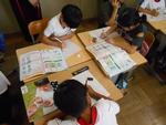 理科指導員訪問で、3年生が「物の重さ」の研究授業を行いました。炊飯器からお椀によそったご飯を重さと、ぎゅっと握っておにぎりにした重さが変わるかどうかを考えるところから始まりました。そして、粘土の重さは形が変わると重さが変わるかの実験の計画をそれぞれで考え、チームでアドバイスをしあっていました。次の実験を楽しみにしている3年生でした。1年生では、「ごかんをつかってはっけんしよう」のクイズづくり、2年生では「おもちゃをパワーアップさせよう」とアイデアを出し合っていました。それぞれの授業で生き生きと活動していたあずきっ子たちでした。