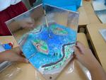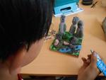 6年生が教室で、おかざきっ子展の作品作りをしていました。「先生、これ、何に見える?」「これねえ、分かる? モンサンミッシェルだよ」「(後ろに映る板を立てて)後ろに映ると、こんなふうになるよ」と、自分の作品について、聞いてきたり教えてくれたりしました。タブレットで画像を見ながら、自分なりに工夫を凝らして、楽しみながら粘土で表現していた6年生でした。