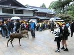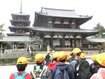 11/5火~6水の2日間、6年生が修学旅行に行ってきました。初日は奈良公園の班別散策だけ雨に降られましたが、あとは大丈夫でした。バスガイドさんの説明を熱心に聞き、法隆寺では玉虫厨子や百済観音などを見学し、奈良公園では、大仏の大きさに感動し、シカにせんべいをあげて楽しむことができました。二日目は日中暑くなるほどの天候に恵まれました。班別タクシー研修では、清水の舞台から京都の街並みを見下ろし、平安神宮でコイにえさをあげ、銀閣寺の落ち着いた雰囲気を感じ、三十三間堂の仏像の数に驚きました。タクシーの運転手さんから聞いた仏像の長い名前を一生懸命覚えようとしている子もいました。金閣寺のまばゆく光る姿を目の前で眺めることができました。バスガイドさんからは、あいさつがよくできる明るい子達だと褒められました。しっかり学んで、あずきっ子のよさを随所で見せることができた6年生たちでした。