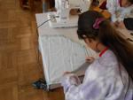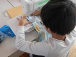 家庭科室で、5年生のエプロン作りが仕上げに入っています。前回見たときは、ミシンを使うのは2回目と言っていましたが、今では上手にミシンでエプロンを縫っている様子でした。来週に控えた山の学習の前に、ご飯を炊いて味噌汁を作ったよとも教えてくれました。出来上がりを楽しみに、安全に気を付けながら集中してミシンに向かっていた5年生でした。