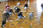 PTA主催であずきっ子まつりがありました。今日は、1,4,6年生で行われました。200枚ほどのリバーシ(表裏が白黒の丸いもの)をひっくり返して、より多く自分たちの色にする競技です。どの学年も、合図とともに一斉にひっくり返していました。さらに今年は、クイズも行われました。「パンダのしっぽは、白か黒か」というクイズや、「けん玉を成功させるのは、お父さん?、先生?」などの対戦もありました。大変盛り上がって、思いっきり楽しむことができたあずきっ子たちでした。