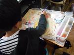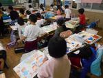 それぞれの学年で、読書感想画に取り組んでいます。お話に出てくる登場人物や情景など、自分が頭の中に浮かべた場面を描いてきています。そろそろ仕上げに入っていて、細かいところまで丁寧に入り塗りをしている子もいました。人物の様子や背景などの色を工夫しながら、一つ一つ色を足していくあずきっ子たちでした。