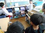 2年生の教室に1年生を招いて交流会が遊々タイムに開かれました。2年生が今まで準備してきたいろいろな遊びやおもちゃを、1年生に楽しんでもらおうと、それぞれのコーナーで張り切って進めていました。UFOキャッチャーや射的、風で動く車でボウリングあそびなど、工夫を凝らした遊びに、1年生も大喜び。移動するたびにどんな遊びかしっかり2年生の説明を聞いて大はしゃぎの1年生と、手作りの遊びを楽しんでもらってうれしそうな2年生でした。