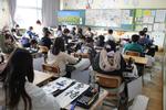 校内書き初め大会が行われました。あずきっ子たちは、1,2年生は鉛筆で、3年生から6年生は毛筆を使って、2学期の授業や冬休みの間に、お手本を基にして何度も練習してきました。字の始まり位置や字の形、止めやはねなど、いろいろなことを意識しながら、一文字ずつ丁寧に書いていました。今の自分で書くことができる精一杯の字を、それぞれ集中して書いていたあずきっ子たちでした。