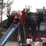 1年生が風車を作っていました。できた風車を、早速どんぐり広場で試していました。速く走れば、その分、風車がよく回ってさらにうれしくなって、とにかく走っていました。何度も何度も走っていました。すべり台の上に立つと風が強くて「見て見て!」と言って、勢いよく回る風車を見せてくれました。すべり台をすべりながら風車を回したり、友達と一緒に並んで回したりと、飽きることなく風車で遊んでいた1年生でした。