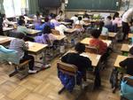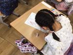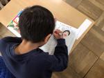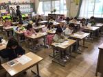 1年生が教室で「めいしを つくろう」とA4用紙に4枚作っていました。好きな食べ物の絵や自分の似顔絵などを描いていました。昨年度も1年生が名刺をもって校長室に来てくれたので、今年の1年生が名刺を持って来てくれるのを楽しみにしています。自分の描いた絵に夢中になって色を塗っていた1年生でした。