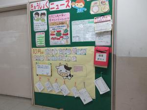 北舎1階配膳室前の掲示板に「きゅうしょく ニュース」として、