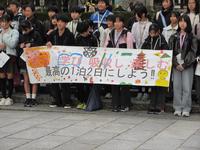 【修学旅行のテーマを掲げて学年で記念撮影】