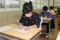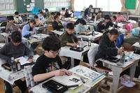 姿勢を正し、手本や筆先をじっと見つめ、ゆっくり力強く筆を進めていく姿が多くみられました。