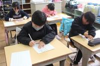 始業式が終わった後、各教室で書き初め大会を行いました。