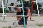 今日は、キッズデイズ3日目。昨日で岡崎市球技大会が終わり、午前中は和太鼓部が体育館で練習をしていました。和太鼓部の力強い太鼓のリズムや美しい笛の音を聴きながら、校庭では校長先生はじめ5名の先生方が遊具のペンキ塗りをしていました。ペンキが取れかけていたブランコやすべり台などの遊具が新品同様、ぴかぴかに生まれ変わりました。大樹寺っ子のみなさん、きれいになった遊具で、安全に、仲良く楽しく遊んでくださいね!