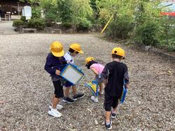 鴨田天満宮には、松ぼっくりやどんぐりなどの木の実、茶色に色づいた葉っぱなどが多くありました。それらを見つけて、とても嬉しそうに友達と話すほほえましい姿がとても印象的でした。季節によって自然環境は大きく変化しています。その変化をしっかりと感じ取り、自然と触れ合いながら多くの不思議や気になるところを追究し続ける大樹寺っ子でいてくださいね。