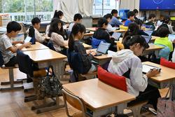 今日は自立の日でした。朝の時間では、テレビ放送で6年生の代表委員会の児童が進行をしながら家康公遺訓の唱和をします。本校では、まなぶ子、がまんする子、やさしい子を意識しながら生活しており、今月の頑張りを振り返りった後来月の目標を立てたりします。一週間後に控えた研究発表会に向けてまなぶ子を目標にする児童の姿が多く見られました。