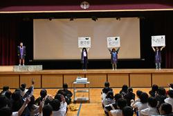 4年2組はこれまでに社会科の学習で岡崎の石産業について学習し、岡崎の石産業の魅力を知ってもらうため、5年生に向けて発表会を行いました。子どもたち自らが考えたイベントを堂々と行う姿はとてもすばらしいものでした。発表を聞いた5年生も感想を伝え、異学年での交流も深まるとてもよい機会になりました。