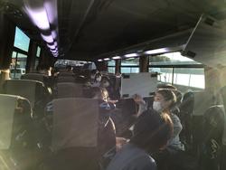 天気も良さそうなので、美しい紅葉が見られそうです。バスの中では、早速、バスレクをしています。2日間、訪問先の様子をお届けします。