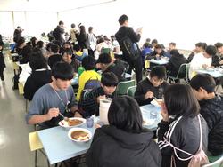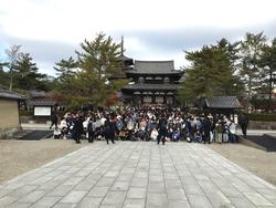 予定より30分早く法隆寺に着きました。先に学年写真を撮ってから昼食にしました。みんなお待ちかねのカツカレーです。