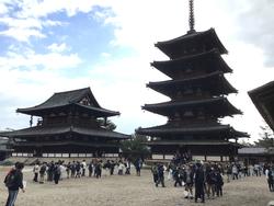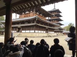 昼食後、西院伽藍を見学しました。ガイドさんから教わったことを熱心にメモしながら、世界最古の木造建築を眺めました。