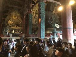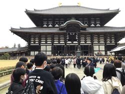 やや混んでいますが、鏡池の前での記念写真はスムーズに撮れました。大仏の大きさに驚きました。今は班別行動をしています。