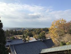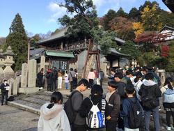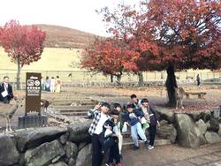 二月堂からの晩秋の景色が最高です。班別行動の最後は若草山の前でお土産を買ったり、鹿と遊んだりしました。