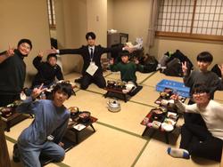 宿に着いて少し休憩した後に食事となりました。修学旅行には珍しい部屋食です。部屋のみんなでお膳を囲んで美味しくいただきました。