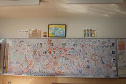教室を覗いてみると、5年生からのメッセージがホワイトボードに書いており、6年生は嬉しそうに読んでいました。