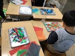 いろんな色のおはながみを使ってかざり作りに取り組みました。