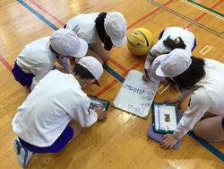 友達の助言を受けたりタブレット端末で自分のフォームを確認したりして上手にパスができるコツを探しました。