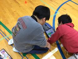 自分たちでコースを作り、ゴールに向かって走る向きや速さを変えながらロボットを動かしました。