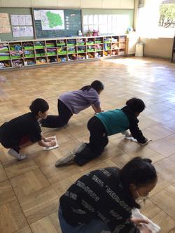 今日は、今年度最後の大掃除が行われました。一家庭一支援として、保護者の方にもお手伝いいただきながら、全校児童一丸となって取り組みました。子どもたちは「一年間の感謝の気持ちを込めて掃除をしよう」「次に使う学年のためにきれいにしよう」と張り切って取り組んでいました。教室は、机や本棚などを全て廊下へ出し、ワックスがけを行いました。今の教室で過ごす時間もわずかとなりましたが、汚さず大切に使っていきたいですね。お手伝いいただいた保護者の皆様、ありがとうございました。
