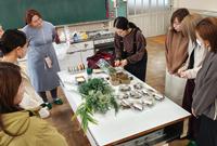 今回は外部講師の先生をお招きして、クリスマスミニリースとスワッグの制作を行いました。