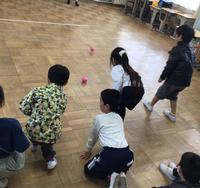 ボールを転がす強さを調整し、奥に設置したガムテープにくっつくように投げる活動を行いました。友達同士で「がんばってね!」と声を掛け合う姿や、ボールがガムテープにくっついたときにみんなで喜び合う姿が見られ、温かい雰囲気の中で活動することができました。