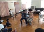 検診の後、5年生が読み聞かせ、1年生が「あきらんどへ ようこそ」の会を行い、どんぐりごまやまつぼっくりけん玉などで遊びました。