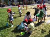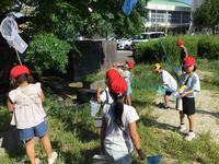 1年生の生活科の学習では、虫を捕まえて一緒に遊びます。午前中の涼しい時間に校庭の遊具周辺で虫を探しました。暑さのせいか、虫は少なかったけれどバッタなどの小さな生き物が見つかりました。「どこにいたの?」「どうやったら捕まえられる?」生まれた疑問を次の活動に生かします。本格的な秋が待ち遠しい1年生です。
