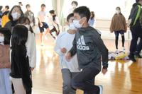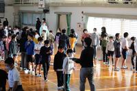 全校児童が体育館に集まって、スリッパリレーや猛獣狩りを行いました。