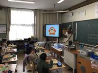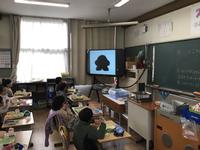 と尋ねられると、給食中の子供たちは、画面をじっと見て考えていました。